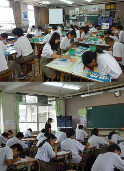 上から、2組、3組 体育、4組 美術 、5組 理科 です。