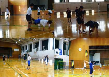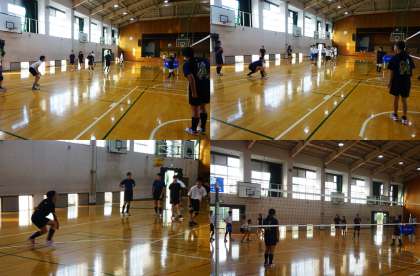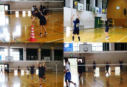 バレーボール部は男子7名、女子10名の合計17名で、普段の練習は一緒に活動しています。新チームになり、夏休みから基本練習を繰り返してきました。1年生が多く、何事もうまくいくことが少ないですが、「心をこめて、ねばり強く」日々の活動をしています。男子は「10月15日」、女子は「10月9日」から始まる新人戦に向けて頑張って練習しています。応援よろしくお願いします。