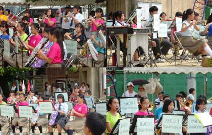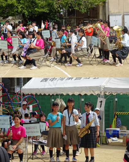 本日(9月25日)、午後より延期になっていました納所学区民大運動会にて洛水高校の方と合同で演奏をしました。