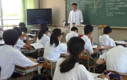 2限の授業の様子です。上から、2年2組 数学、2年3組 英語、国語(分割授業)、1組 です。