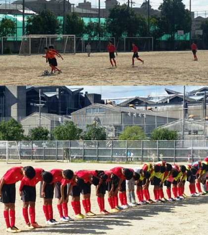 本日(10月10日)、新人戦の予選リーグが行われ、洛南中学校と対戦しました。試合は、立ち上がりに1点を先制されたものの、1点を取り返し前半を1対1で終えました。後半も相手の攻撃をしのぎ1対1の引き分けで終わりました。