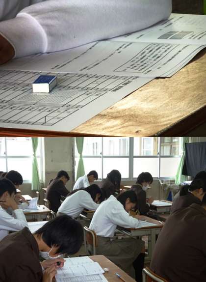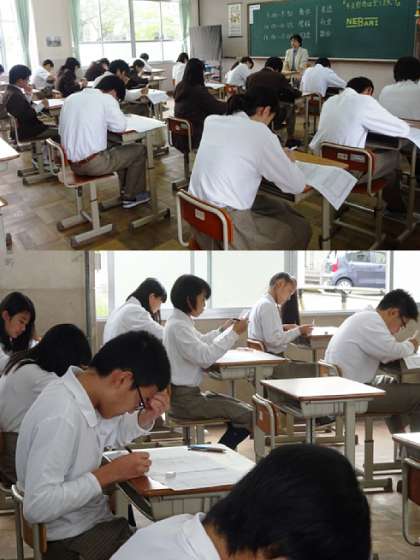 2限の数学のテスト様子です。みんな時間ぎりぎりまであきらめずねばっていました。