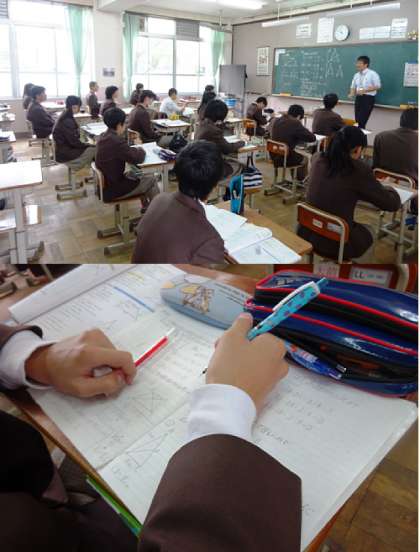 上から、1組 美術、2組 数学、3組 理科 です。