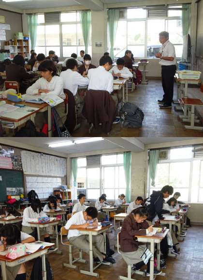 4限の授業の様子です。上から、2組 社会、3組 国語、4組 数学、5組 理科 です。