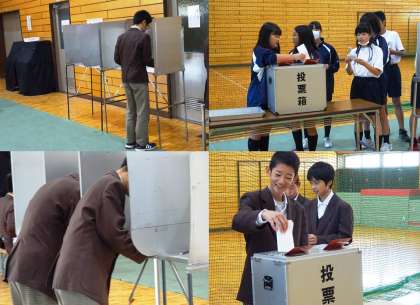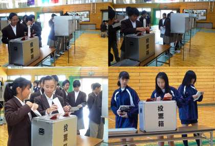 投票の様子です。登校した生徒全員が昼休みに投票を済ませました。今日の放課後、選挙管理委員により開票され、結果は4日(金)に公表されます。