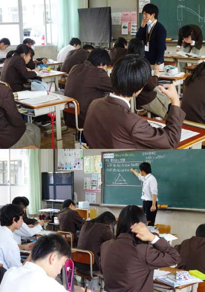 5授業の様子です。上から、2組 音楽、3組 家庭、4組 国語、5組 数学 です。