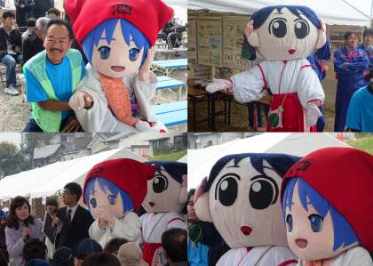 ゆるキャラ「ふしみこちゃん」と「底冷雪子」会場に来ていました。また、本校の後に横大路小学校の児童さんも参加していました。