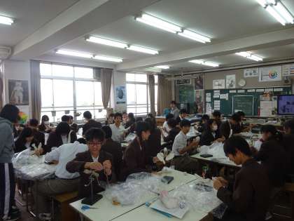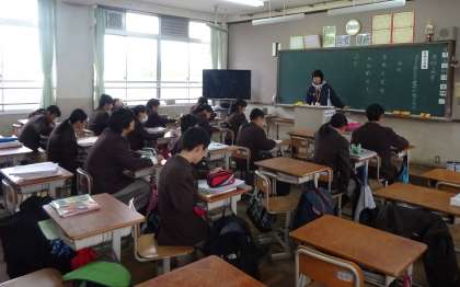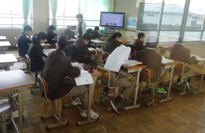 1限の授業の様子です。朝から頑張っています。上から、2年2組 国語、英語(分割授業)、2年3組 美術 です。