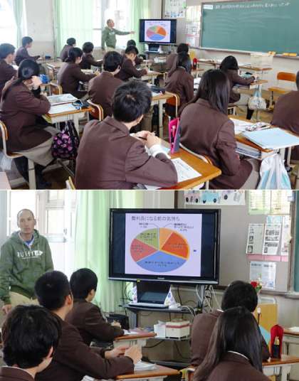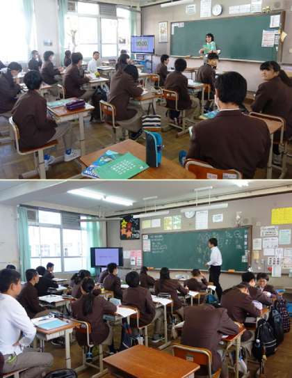 4限の授業の様子です。上から、2組 英語、4組 数学、3組 音楽、5組 社会 です。