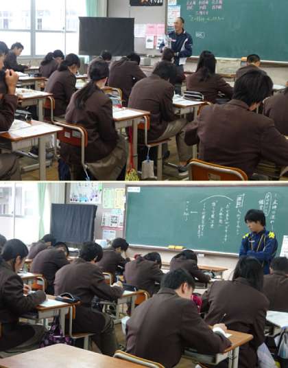 2限の授業の様子です。上から、2組 英語、3組 数学、4組 社会、5組 国語 です。
