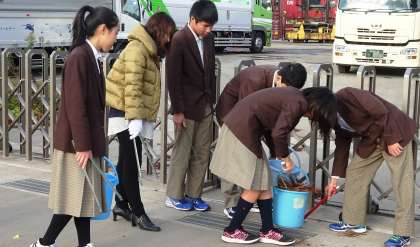 新本部になって初めてのモニクリです。新本部以外にもたくさんのボランティアの子どもたちが参加してくれました。今日は、普段のゴミ掃除と落ち葉の掃除の2つのグループに分かれて実施しました。