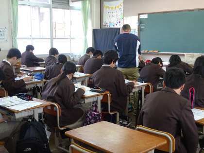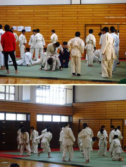 2限の授業の様子です。上から、2組、3組 体育(柔道の授業が始まりました)、4組 英語、5組 社会 です。