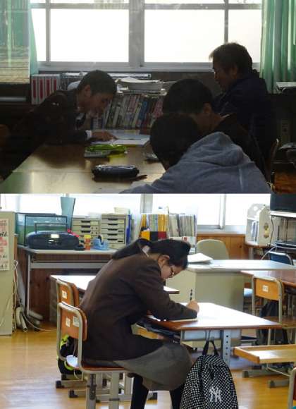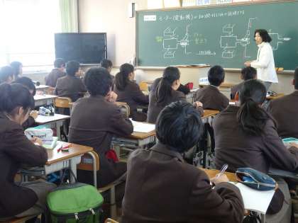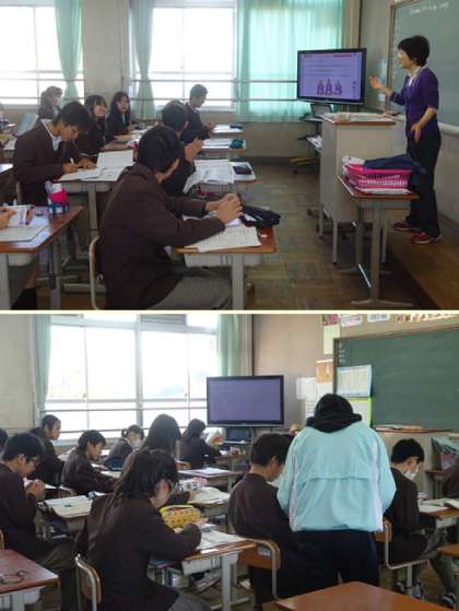 1限の授業の様子です。上から、2年2組 理科、2年3組 英語、国語(分割授業)、1組 です。