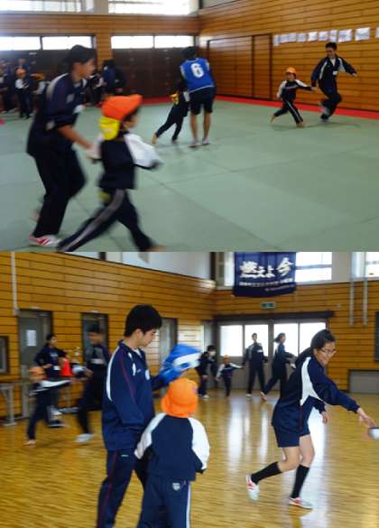 本日の2限、横大路保育園の園児さんを迎え、ふれあい体験を行いました。今日は3組の実習です。絵本の読み聞かせなどをしました。中学生もみんなニコニコ品がしながら過ごしていました。