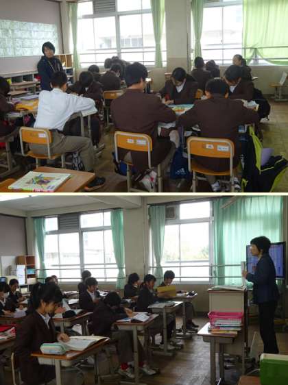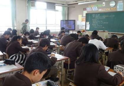 3限の授業の様子です。上から、2年2組 国語、英語(分割授業)、2年3組 社会、1組 です。