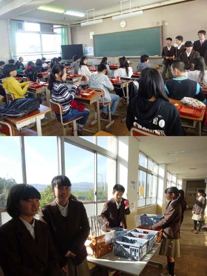 〇小学生の給食試食会の様子です。楽しそうです。また、生徒会本部の子どもたちもがんばってくれています。