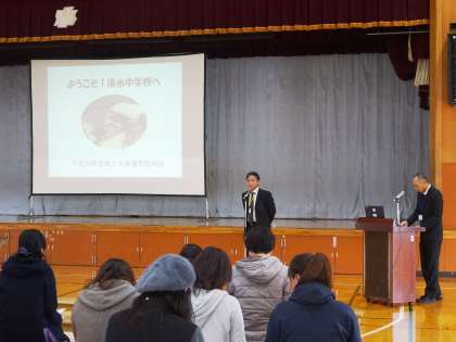 学校長のあいさつの後、教育課程や中学校生活などの説明をさせていただきました。