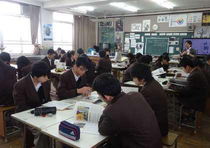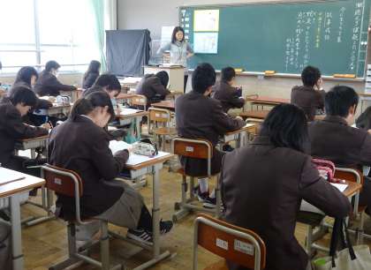 1限の授業の様子です。朝からがんばっています。上から、2組 美術、3組 数学、4組 国語 です。