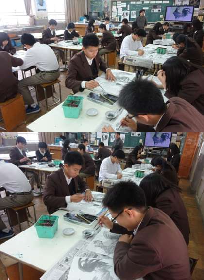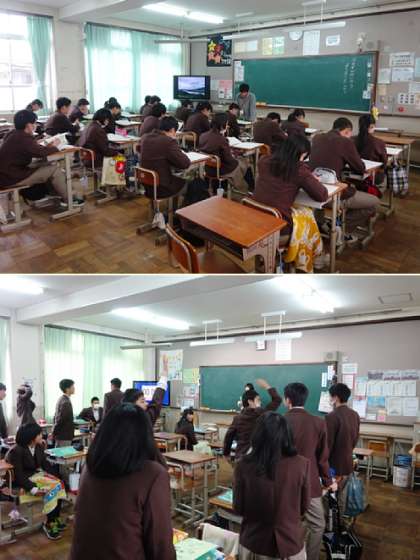 6限の授業の様子です。上から、2組 理科、3組 美術、4組 国語、5組 英語 です。
