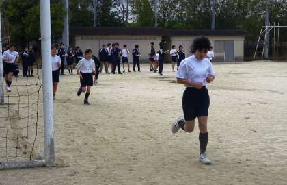 4限の授業の様子です。上から、2組、4組 体育(持久走・マラソン大会に向けて)、3組 社会 です。