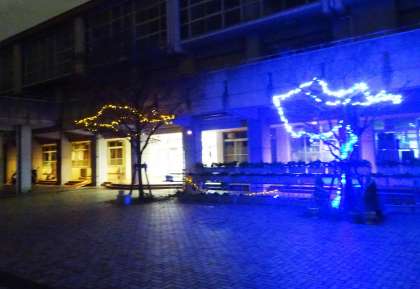 生徒会本部役員の生徒たちが、玄関前の木を飾ってくれました。