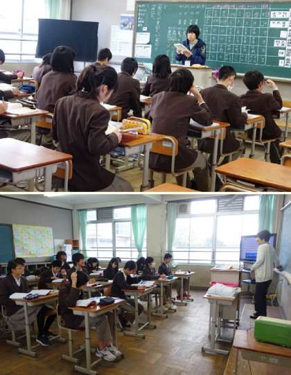 1限の授業の様子です。上から、2年2組 理科、2年3組 国語、英語(分割授業)、1組 です。