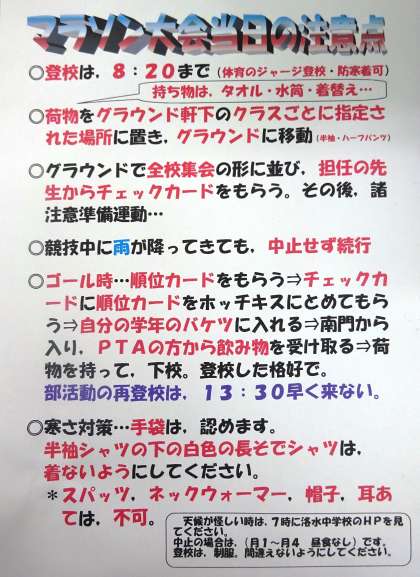 12月19日月曜日に「校内マラソン大会」を予定しています。8時20分登校です。
