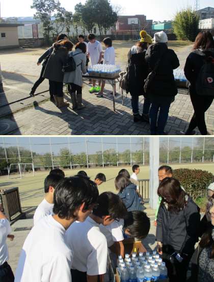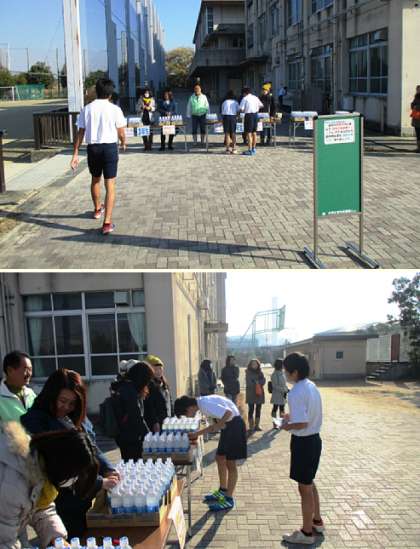 ゴールした生徒は学校に戻り、PTAの方からスポーツドリンクをもらっていました。