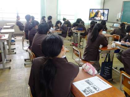 1限の授業の様子です。上から、2組 英語、3組 国語、4組 理科 です。