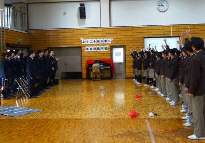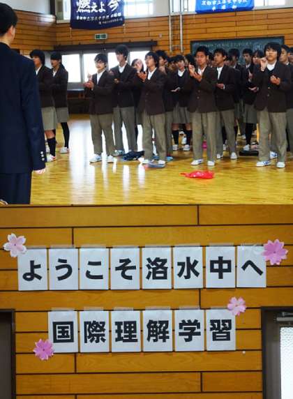 本日の3,4限、2年生は、民族や国籍の違いを越えて、お互いを認め合い、それぞれの生き方・考え方を大切にして、相互に理解することの必要性を知る学習をしました。京都両洋高等学校の中国からの留学生に来校していただき、まずは2年生の生徒が、手話を交えた歌でみなさんを迎えました。その後、中国の国の紹介、クイズなどについて、集会の場での説明と更にコミュニケーションができるように各教室に戻って、会話レッスンなどを含めての交流を行いました。