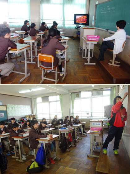 3限の授業の様子です。上から、2年2組 英語、国語(分割授業)、2年3組 社会、1組 です。