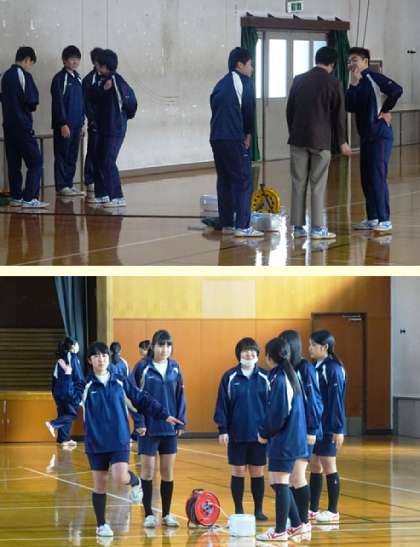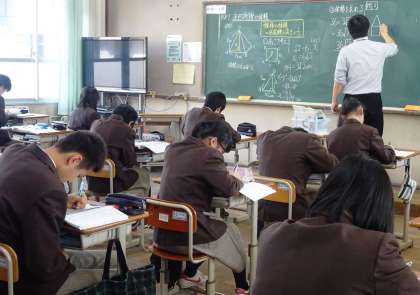 3限の授業の様子です。上から、2組 家庭科、3組 数学、4組、5組 体育 です。