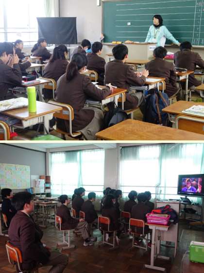 3限の授業の様子です。上から、2年2組 国語、英語(分割授業)、2年3組 音楽、1組 です。