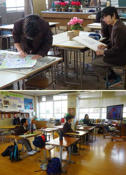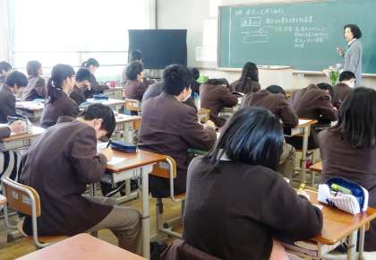 3限の授業の様子です。上から、2年2組 国語、英語(分割授業)、2年3組 理科、1組 です。