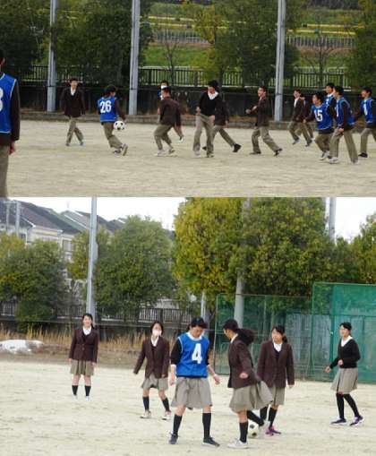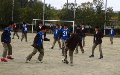 昼休みには体育委員会主催のスポーツ大会が行われています。本日は、2年生のサッカーが行われていました。