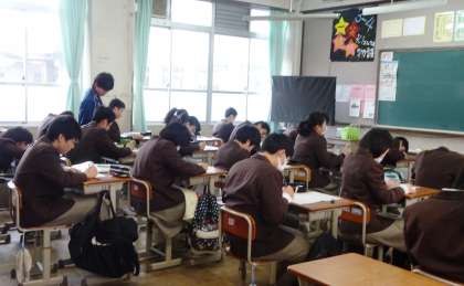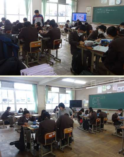 1限の授業の様子です。上から、2組 社会、3組 英語、4組 国語、5組 理科 です。