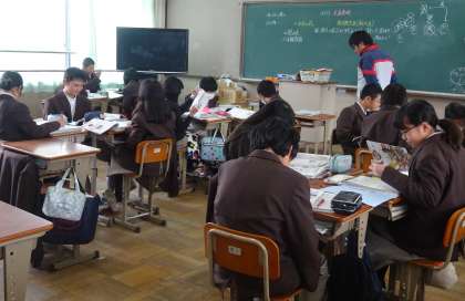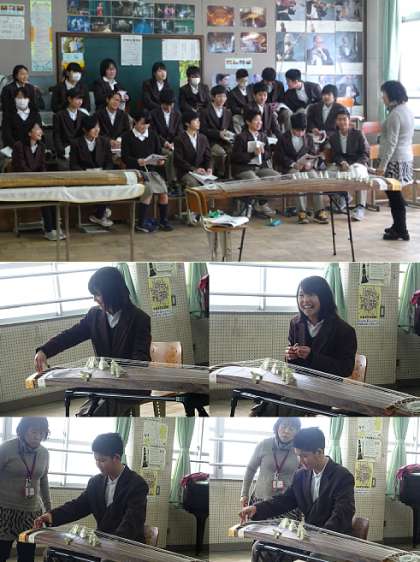 3限の授業の様子です。上から、2組 国語、3組 社会、4組 音楽(箏の演奏をしています)です。