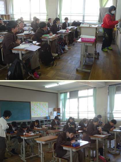 2限の授業の様子です。上から、2年2組 国語、英語(分割授業)、2年3組 美術、1組 です。
