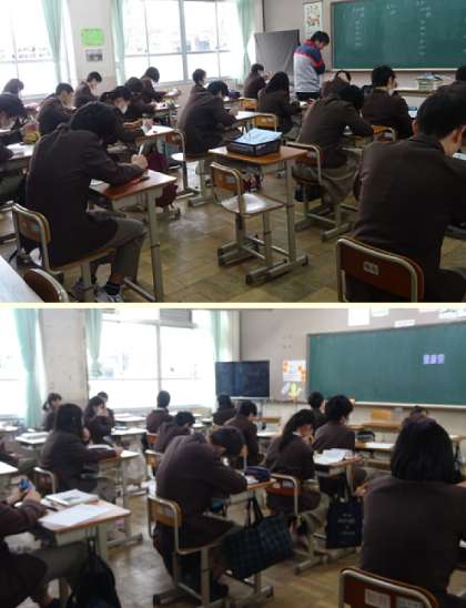 3限の授業の様子です。上から、2組 社会、3組 国語、4組 数学、5組 理科 です。
