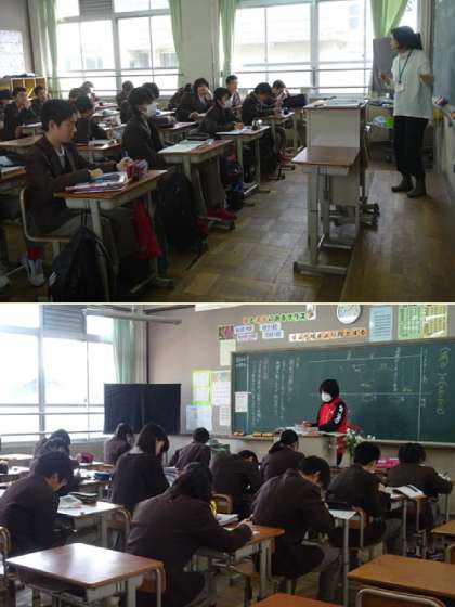 1限の授業の様子です。上から、2年2組 理科、2年3組 国語、英語(分割授業)、1組 です。