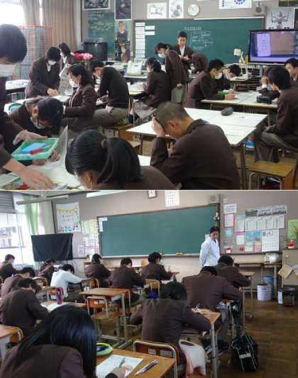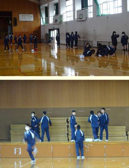 3限の授業の様子です。上から、2組、3組 体育、4組 美術、5組 理科 です。