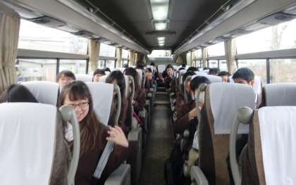 1年生は2台のバスに分乗して、ファイナンスパーク学習(京都まなびの街行き方探究館)へ出発しました。