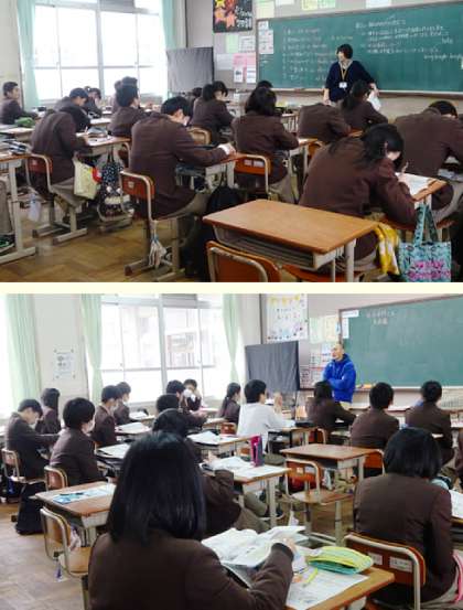 2限の授業の様子です。上から、2組、3組 体育、4組 英語、5組 社会 です。