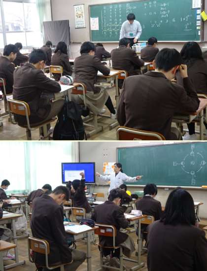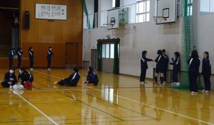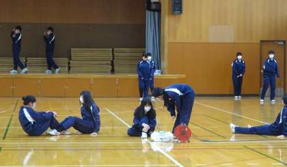 2限の授業の様子です。上から、2組 数学、3組 理科、4組、5組 体育 です。