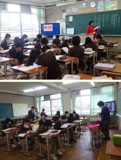 2限の授業の様子です。上から、2年2組 技術、2年3組 国語、英語(分割授業)、1組 国語 です。
