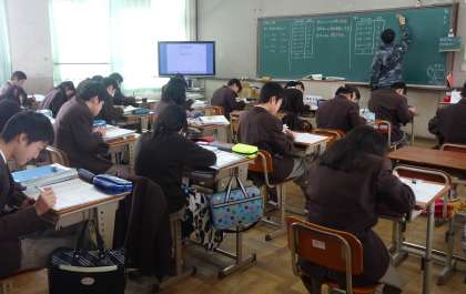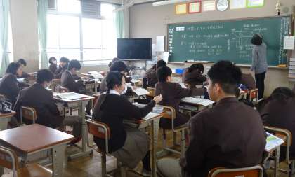 1限の授業の様子です。上から、2組 保健、3組 数学、4組 理科 です。