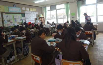3限の授業の様子です。上から、2組 社会、3組 国語、4組 数学、5組 理科 です。