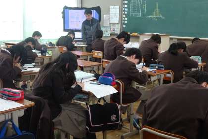 3限の授業の様子です。上から、2組 技術、3組 国語、4組 数学 です。