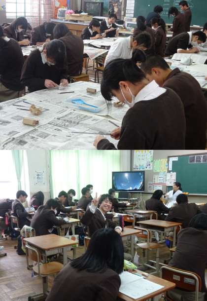 3限の授業の様子です。上から、2組、3組 体育、4組 美術、5組 理科 です。