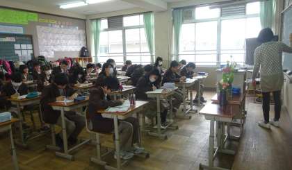 3限の授業の様子です。上から、2組 国語、英語(分割授業) 、3組 理科 です。
